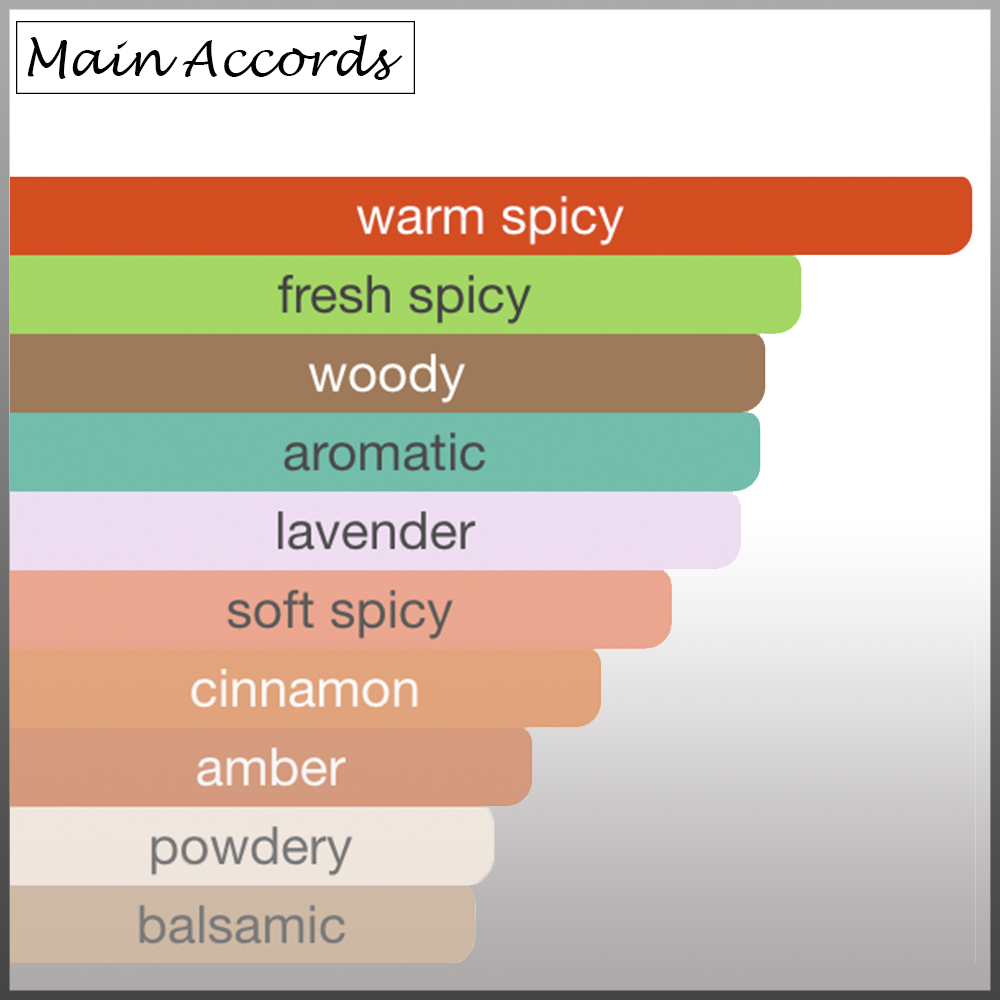 Nutmeg, Cinnamon, Cardamom, Grapefruit, Lavender, Licorice, Sandalwood, Amber, Patchouli and Haitian Vetiver
