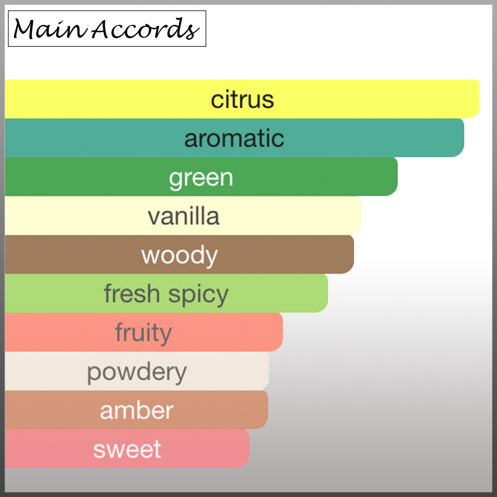 Mint, Green Apple, Lemon, Tonka Bean, Ambroxan, Geranium,Madagascar Vanilla, Virginian Cedar, Atlas Cedar, Vetiver and OakmossMint, Green Apple, Lemon, Tonka Bean, Ambroxan, Geranium,Madagascar Vanilla, Virginian Cedar, Atlas Cedar, Vetiver and Oakmoss