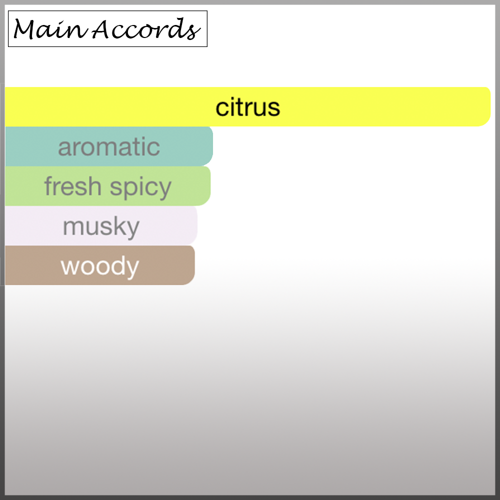 Lemon, Lime, Grapefruit, Blood Orange, Sicilian Bergamot, Mandarin Orange, Pink Pepper, White Amber, Black Currant; Musk, Oakmoss and Patchouli.