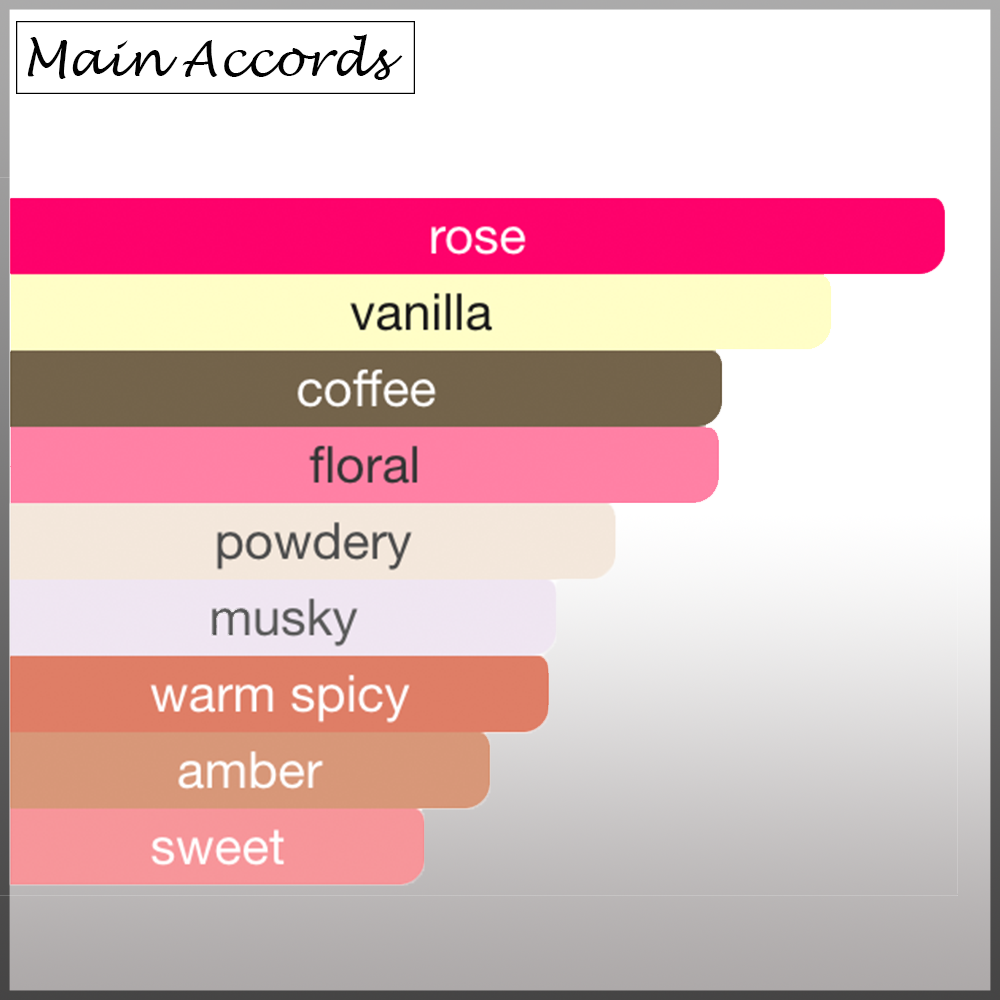 Floral Notes, Coffee, Vanilla, White Musk and Amber.